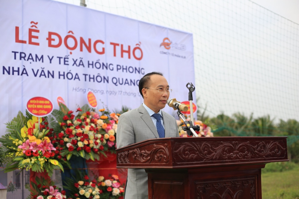 Phát biểu tại lễ động thổ, ông Đặng Huy Hiến – Chủ tịch UBND xã Hồng Phong khẳng định đây là dấu mốc hết sức quan trọng thể hiện sự quyết tâm hành động của Công ty Cổ phần KLB, sự chào đón nhiệt thành của nhân dân Hồng Phong với những người con quê hương tâm huyết. Công trình Trạm Y tế xã sẽ phát huy hết công năng, góp phần cho cán bộ, nhân viên Trạm Y tế xã có đầy đủ cơ sở vật chất phục vụ tốt công tác khám chữa bệnh ban đầu cho nhân dân và công tác phòng, chống dịch bệnh và duy trì xã đạt Chuẩn Quốc gia về y tế năm 2023. Công trình Nhà văn hóa thôn Quang Rực sẽ tạo điều kiện cho cán bộ, đảng viên và nhân dân trong thôn sớm có nơi sinh hoạt văn hóa tinh thần, góp phần nâng cao chất lượng xây dựng GĐVH-LVH, nhằm thực hiện tốt Cuộc vận động “Toàn dân đoàn kết xây dựng NTM đô thị văn minh”, xây dựng xã Hồng Phong sớm hoàn thành mục tiêu xây dựng NTM nâng cao, trước năm 2025 và NTM kiểu mẫu trước năm 2030..