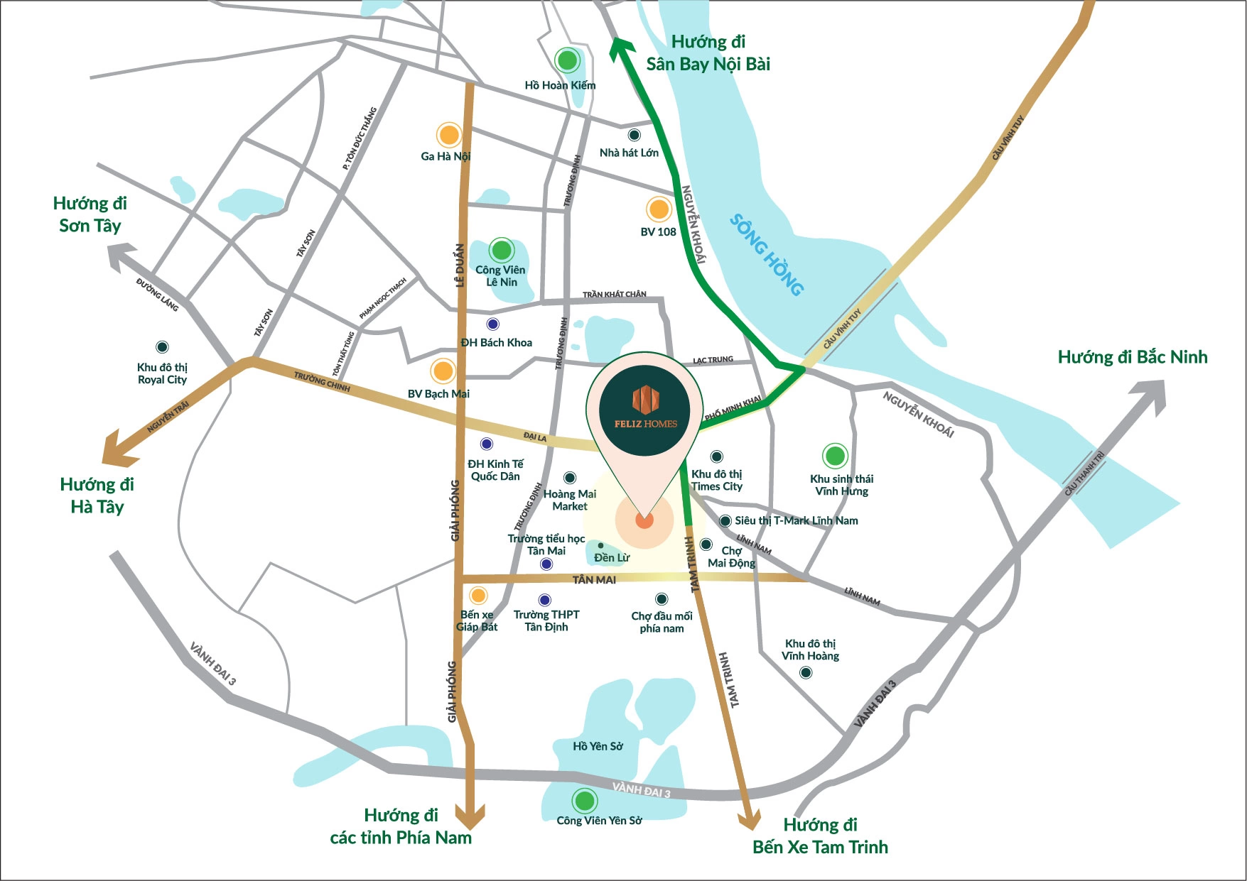 - With nearly 80% of the area devoted to green space and amenities, Feliz Homes is a park located between Hoang Van Thu ward and Mai Dong ward of Hoang Mai urban district, a tropical resort in the heart of Hanoi.