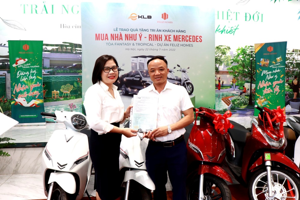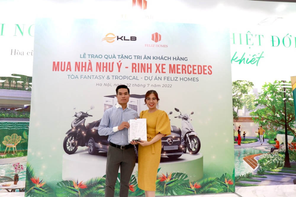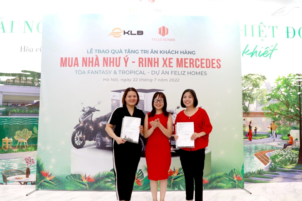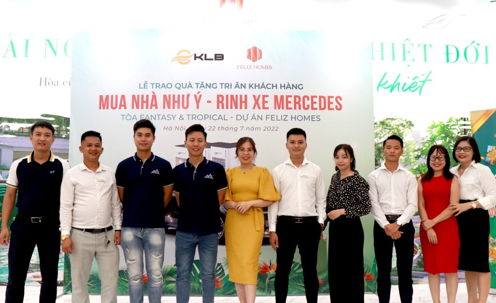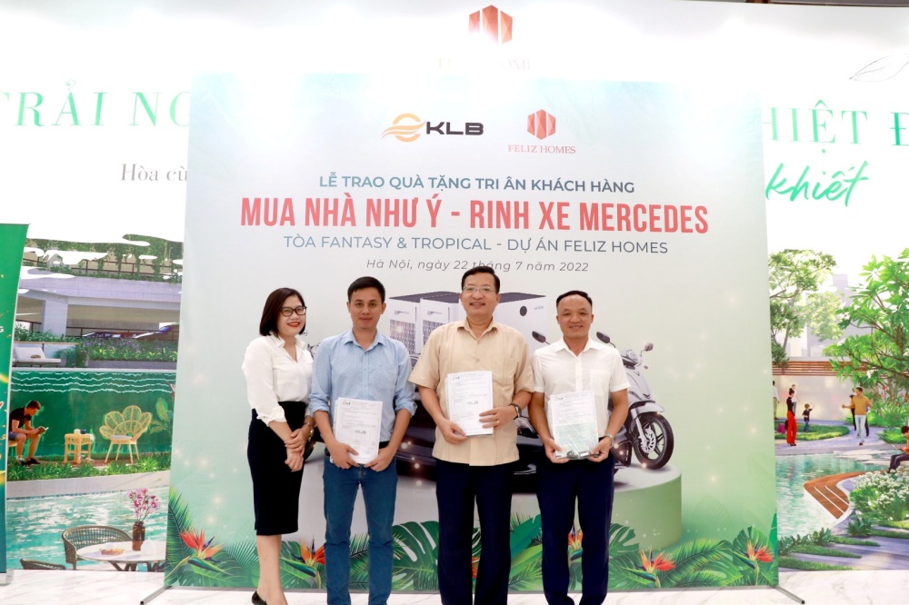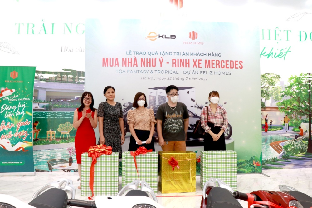 Ngày 22/7/2022 tại VPBH dự án Feliz Homes, Chủ đầu tư KLB đã tổ chức chính thức trao quà tặng bốc thăm trúng thưởng cho các khách hàng và nhân viên kinh doanh may mắn của chương trình “Mua nhà như ý – Rinh xe Mercedes”.