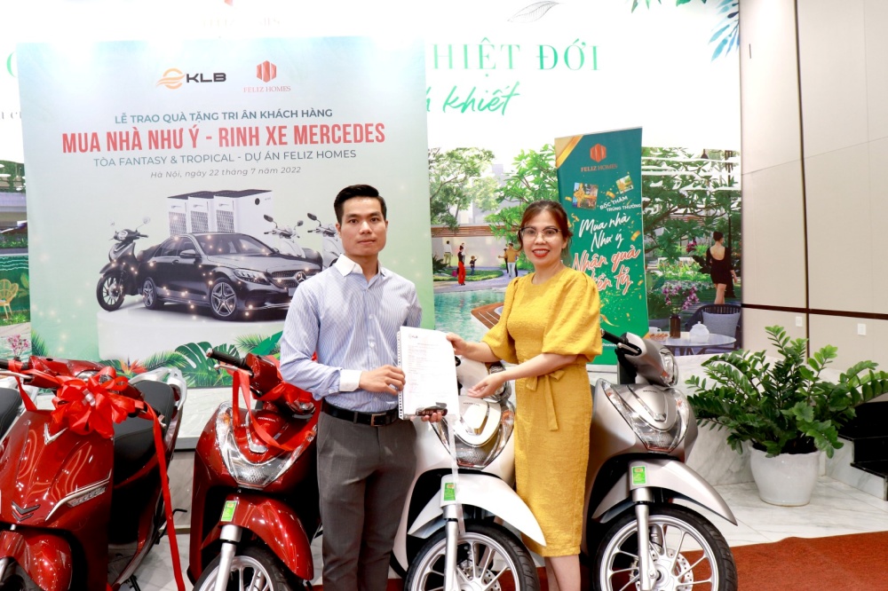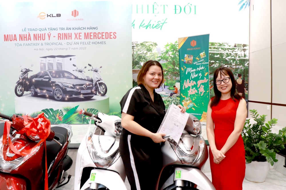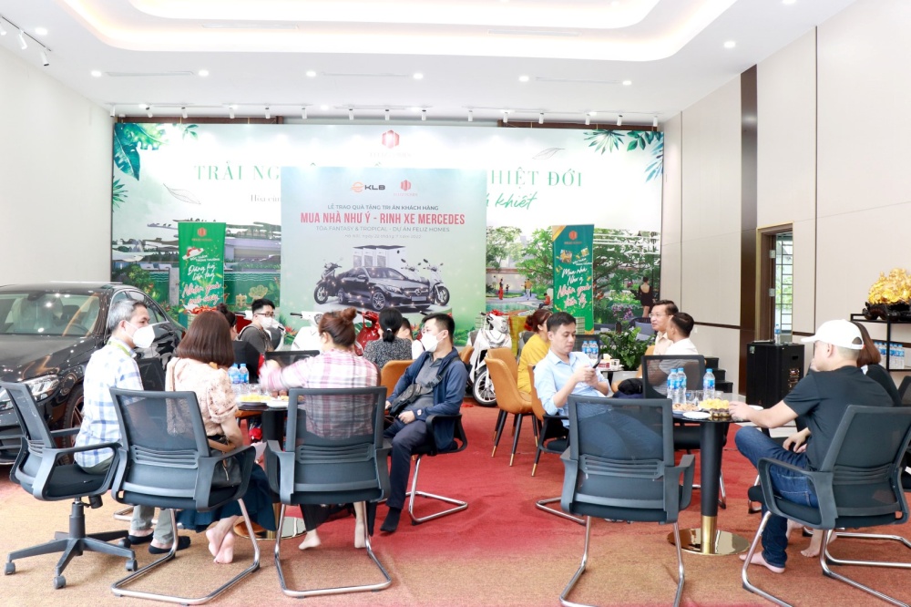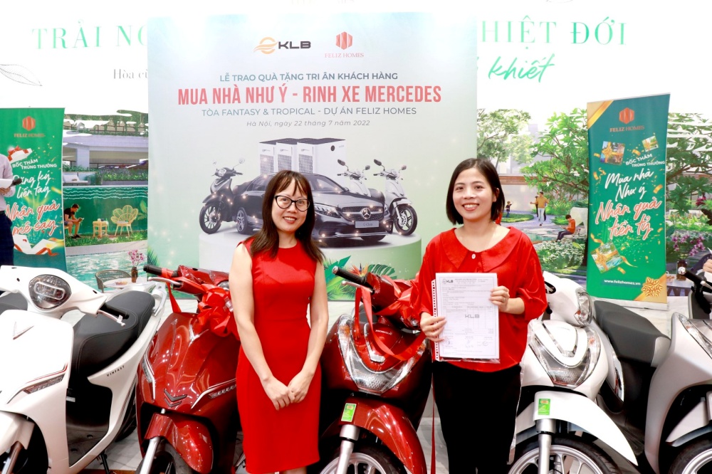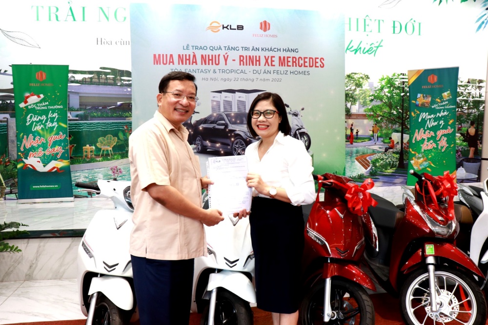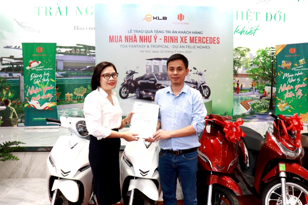 Ngày 22/7/2022 tại VPBH dự án Feliz Homes, Chủ đầu tư KLB đã tổ chức chính thức trao quà tặng bốc thăm trúng thưởng cho các khách hàng và nhân viên kinh doanh may mắn của chương trình “Mua nhà như ý – Rinh xe Mercedes”.