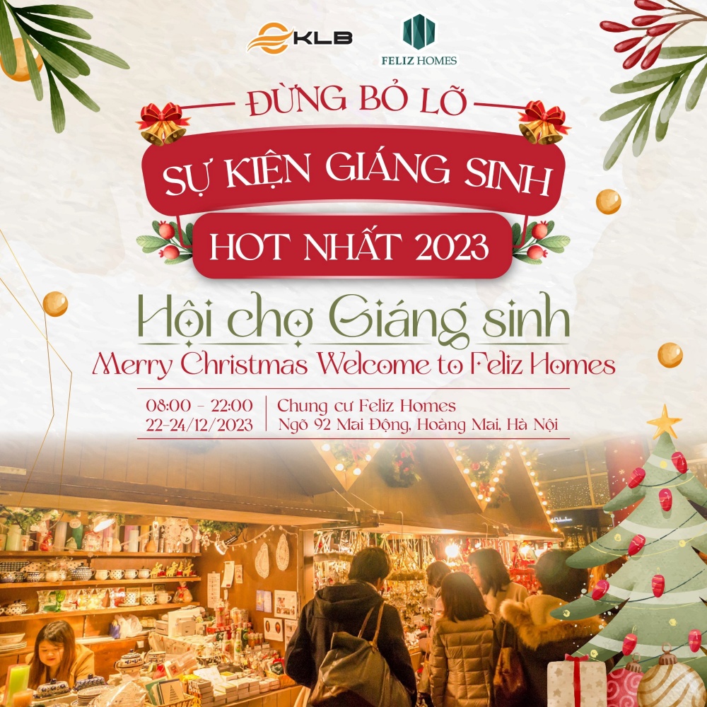 Ngày 23 và 24/12/2023 tại khuôn viên chung cư Feliz Homes – 92 Mai Động, Hà Nội sẽ diễn ra sự kiện Merry Christmas – Welcome to Feliz Homes quy tụ các hoạt động sôi nổi của lễ hội đường phố, vui chơi giải trí, ẩm thực và mua sắm hấp dẫn.