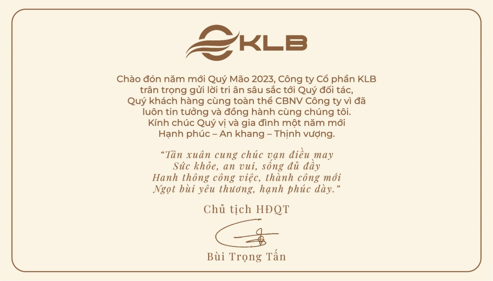 Nhân dịp Tết cổ truyền Xuân Quý Mão 2023 cận kề, công ty CP KLB trân trọng gửi tới CBNV của hệ thống KLB phần quà tết với những lời cầu chúc tốt đẹp nhất dành cho tất cả mọi người trong năm mới 2023.