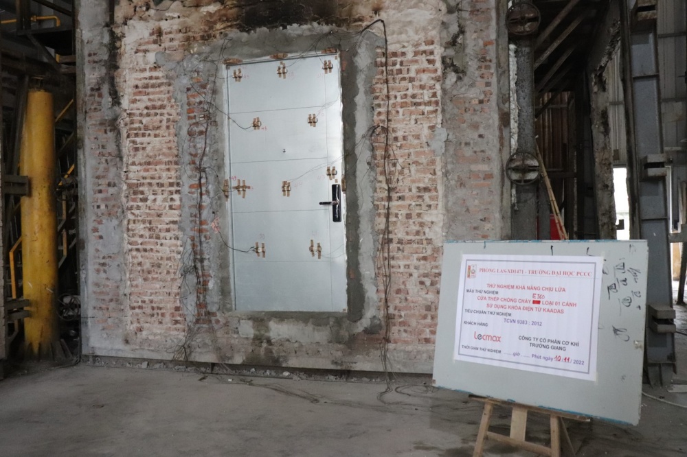 Ngày 10/11/2022, Phòng Las-XD1471 – Đại Học PCCC (Lương Sơn – Hòa Bình) đã tiến hành thử nghiệm kiểm tra khả năng chịu lửa đối với 01 mẫu cửa thép chống cháy EI60 loại 1 cánh sử dụng khóa điện tử KAADAS sẽ được sử dụng tại dự án Feliz Homes.