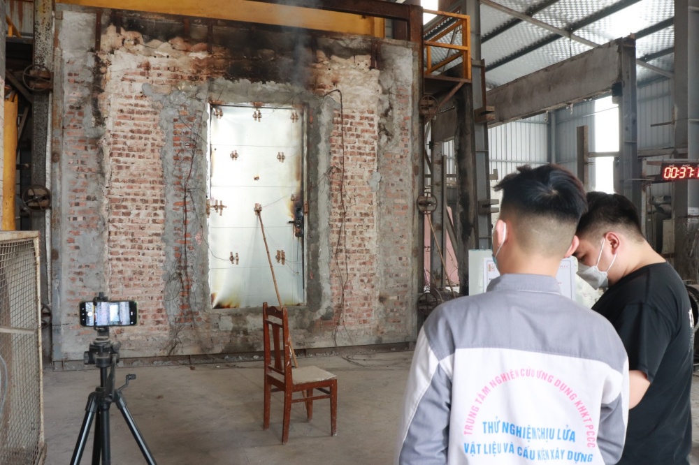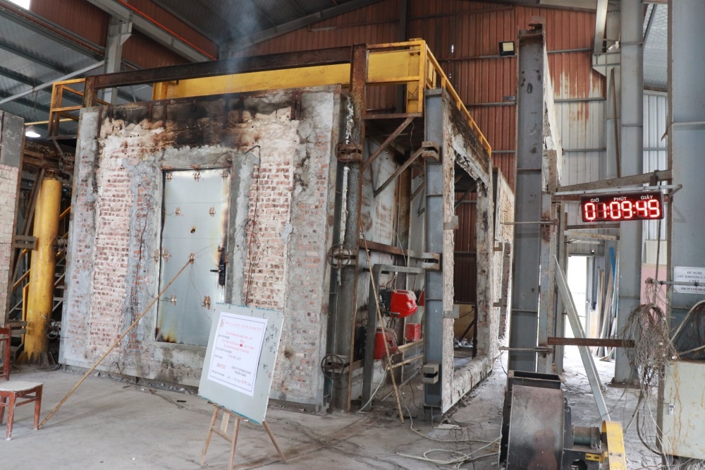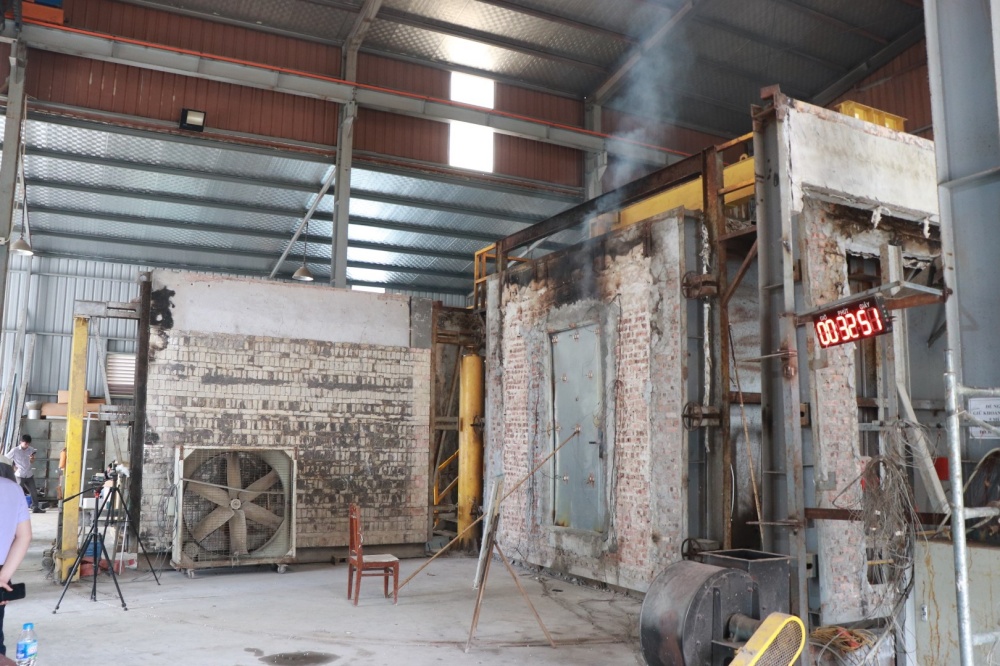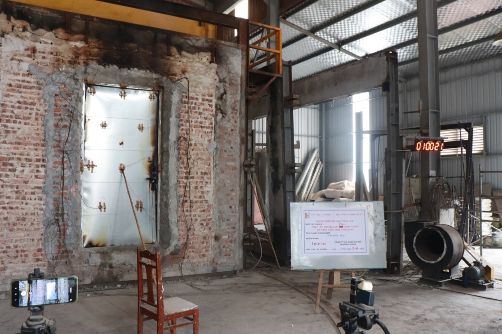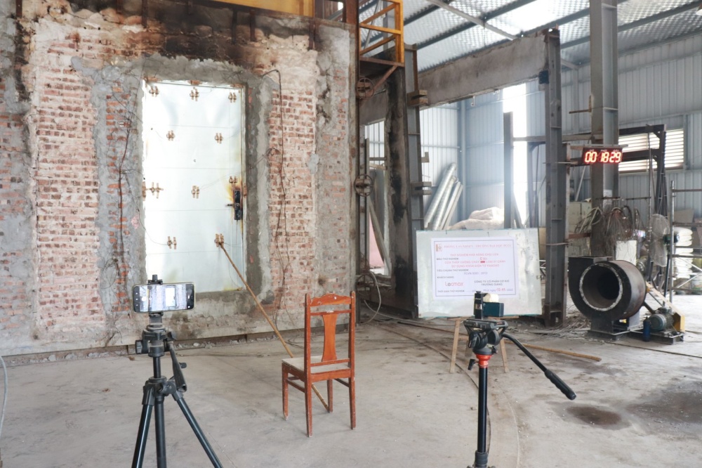 Thử nghiệm xác định khả năng chịu lửa của mẫu cửa thép chống cháy tại dự án Feliz Homes