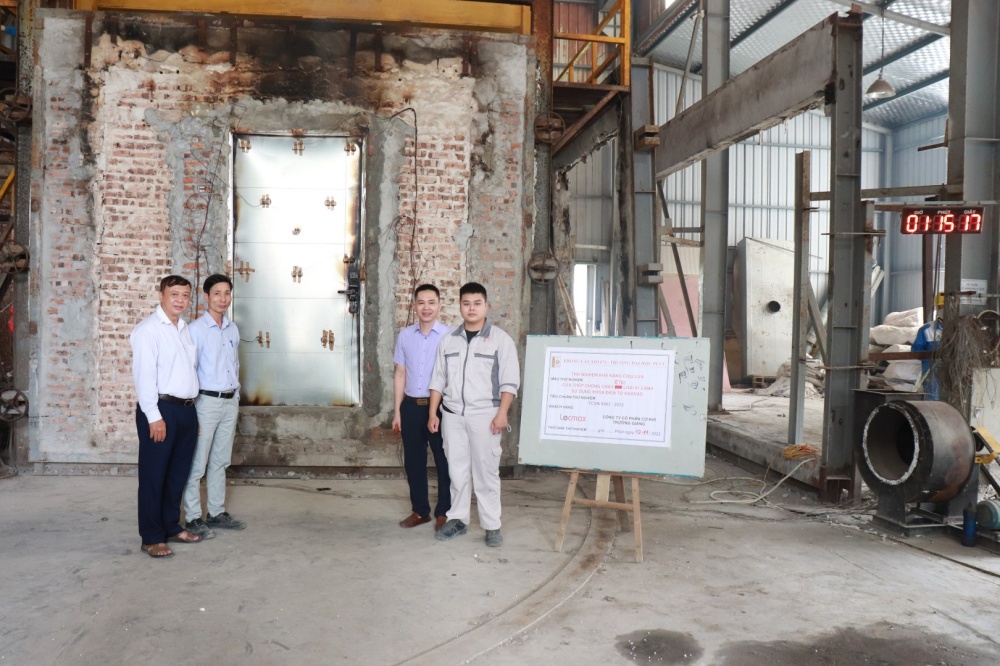 Kết quả thử nghiệm mẫu cửa thép chống cháy EI60 loại 1 cánh sử dụng khóa điện tử KAADAS cho dự án Feliz Homes sẽ được chính thức công bố bởi Trung tâm Nghiên cứu Ứng dụng KHKT Phòng cháy Chữa cháy – Đại học PCCC.