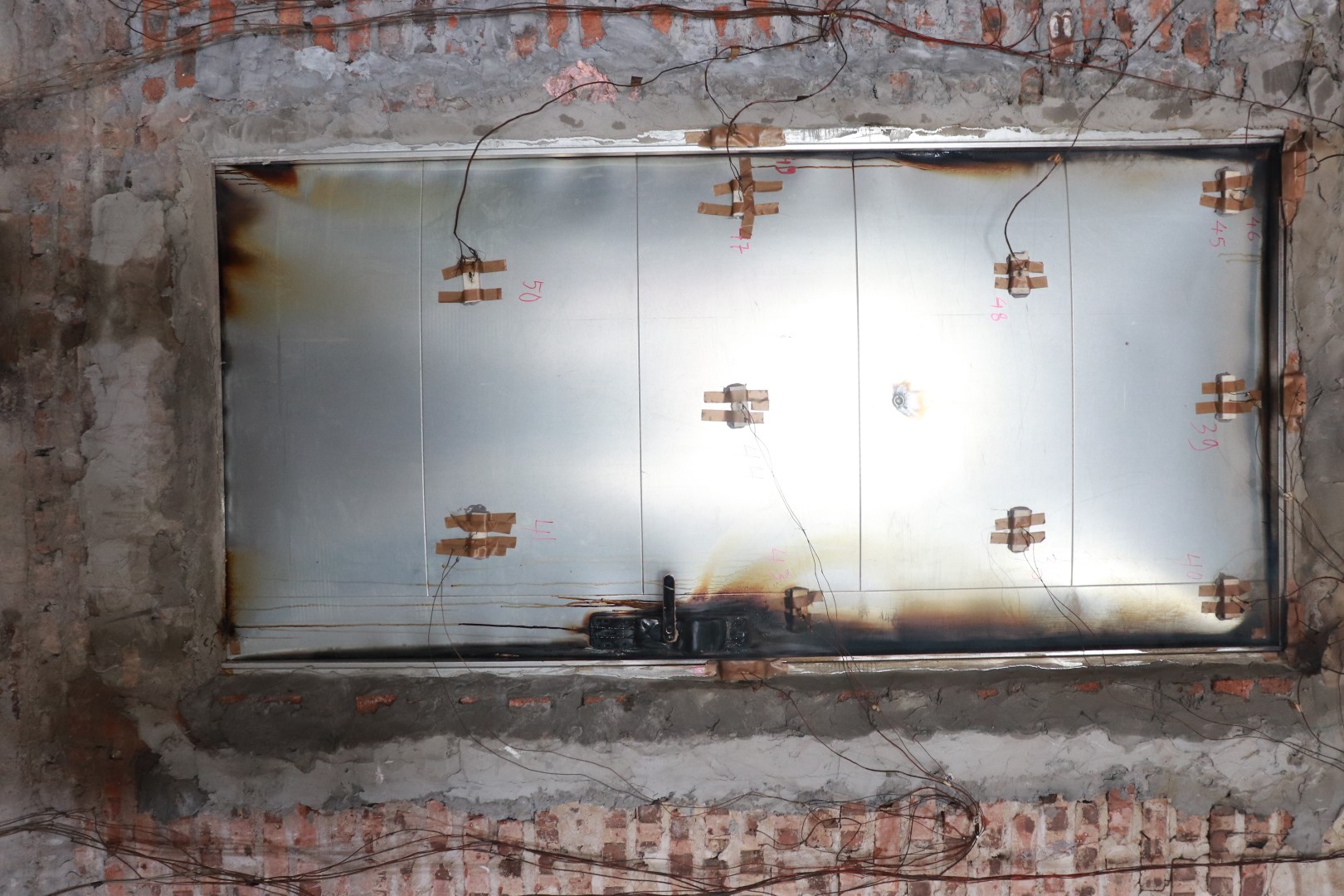 Ngoài cửa được gắn cảm biến nhiệt để đo nhiệt lượng tỏa ra, trong đó cảm biến đo tại nhiều điểm trên cửa và truyền tín hiệu về phòng điều khiển, hiển thị các thông số lên màn hình để kỹ thuật viên theo dõi và đánh giá.
